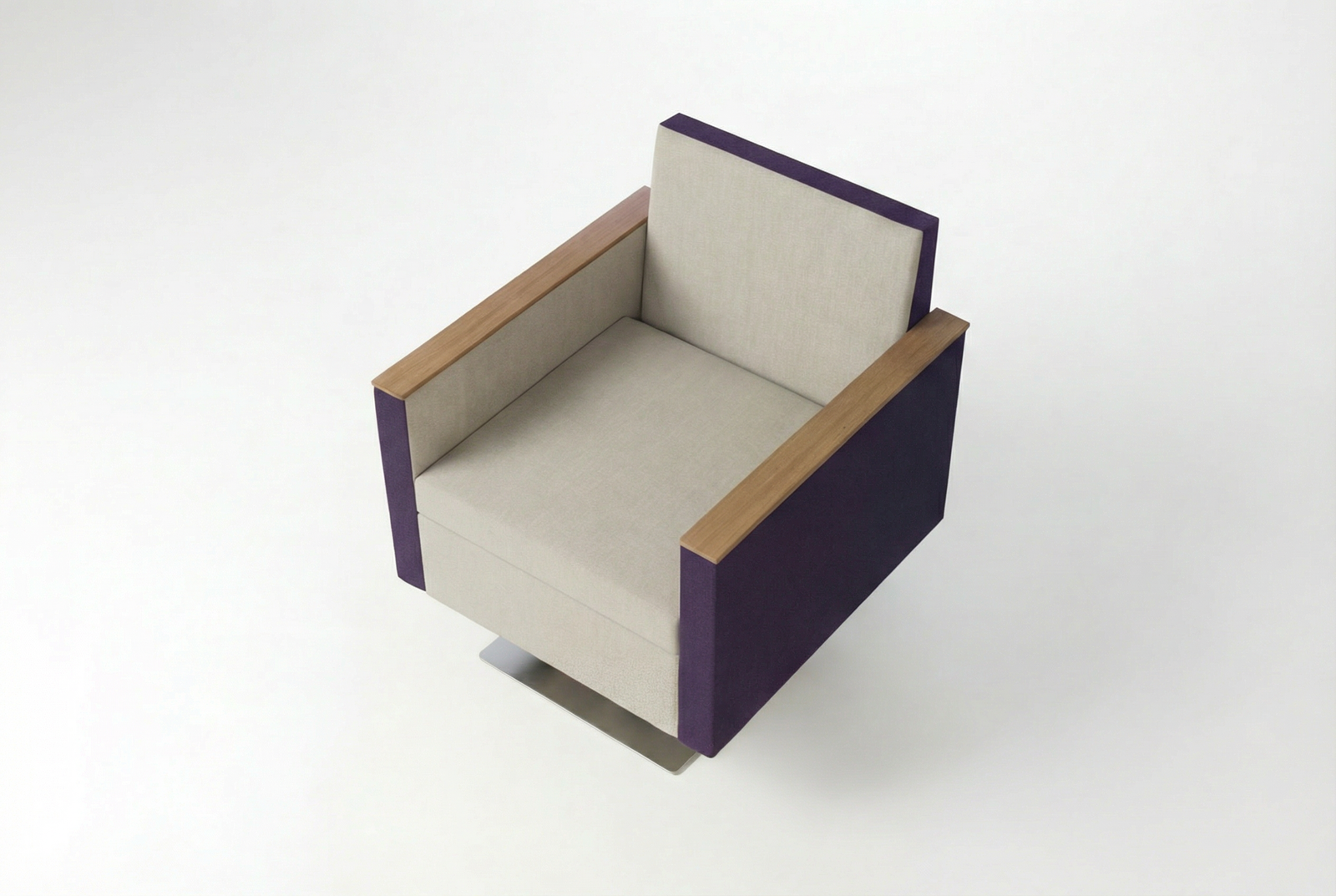 È una poltrona compatta in stile lounge, disponibile con schienale alto o basso, ideale per diversi contesti grazie alle sue dimensioni contenute.