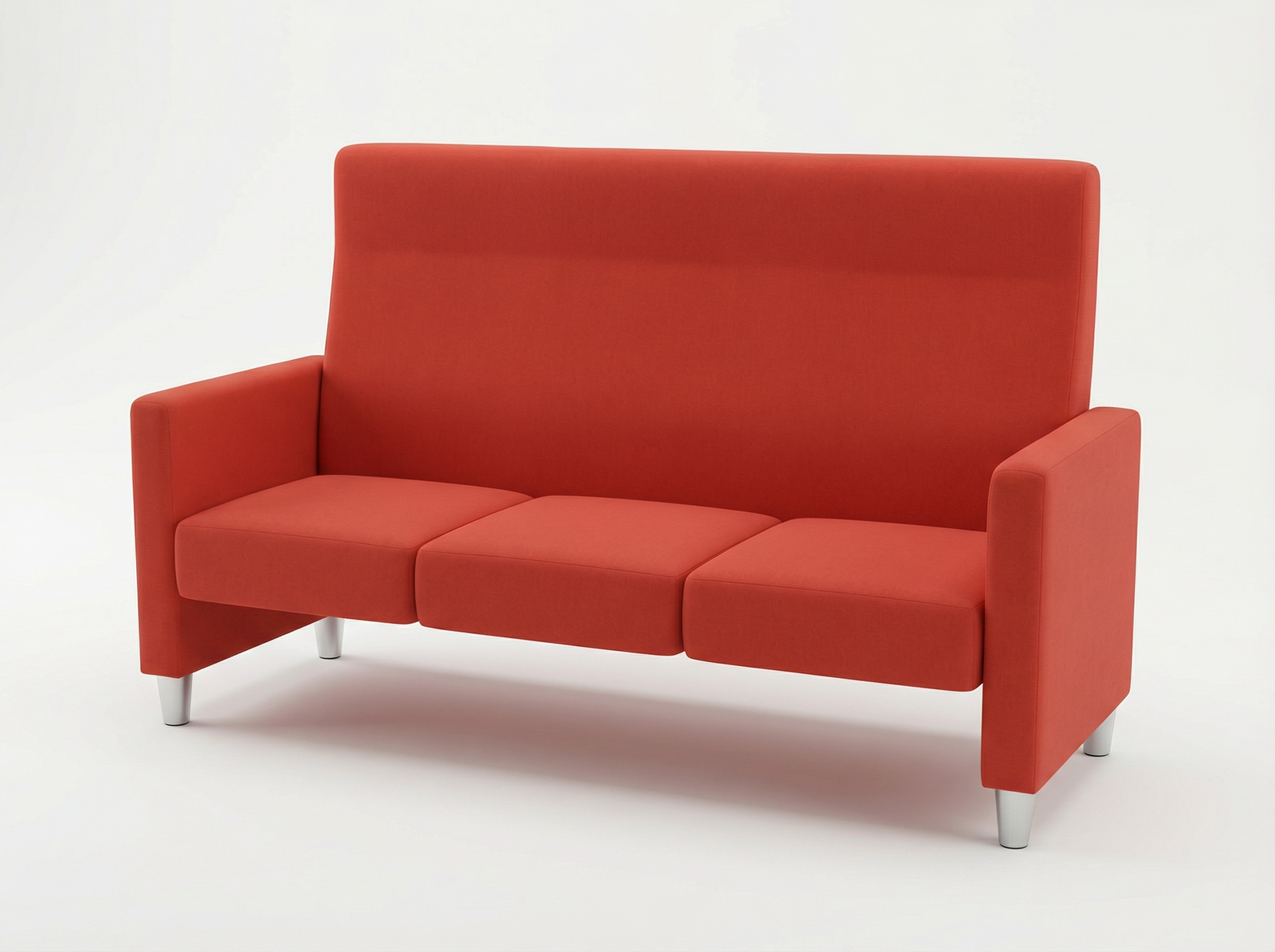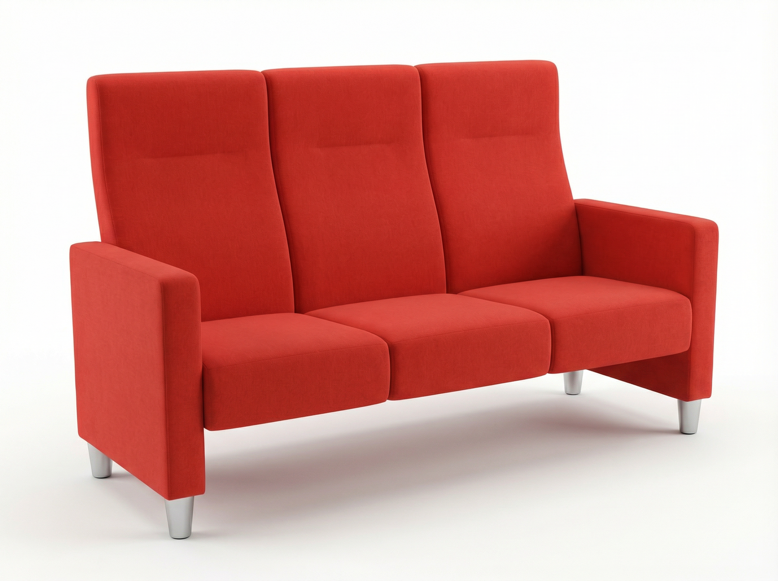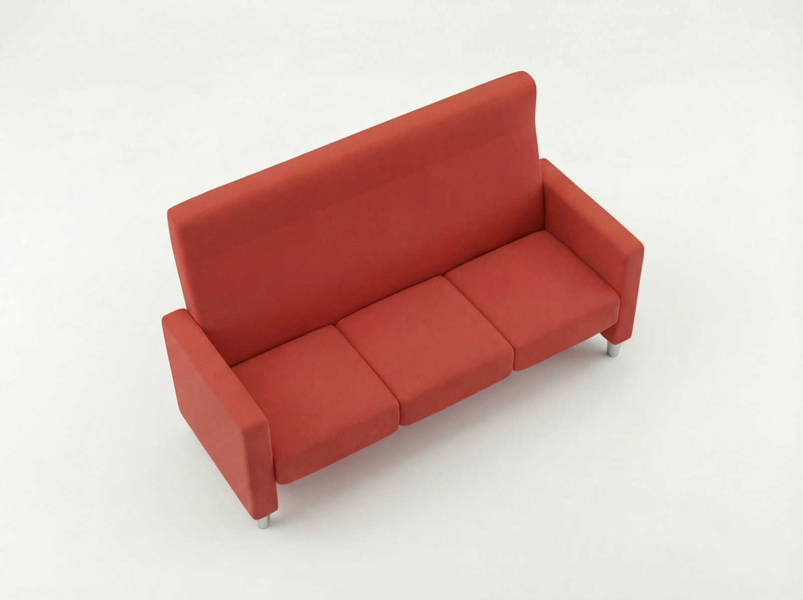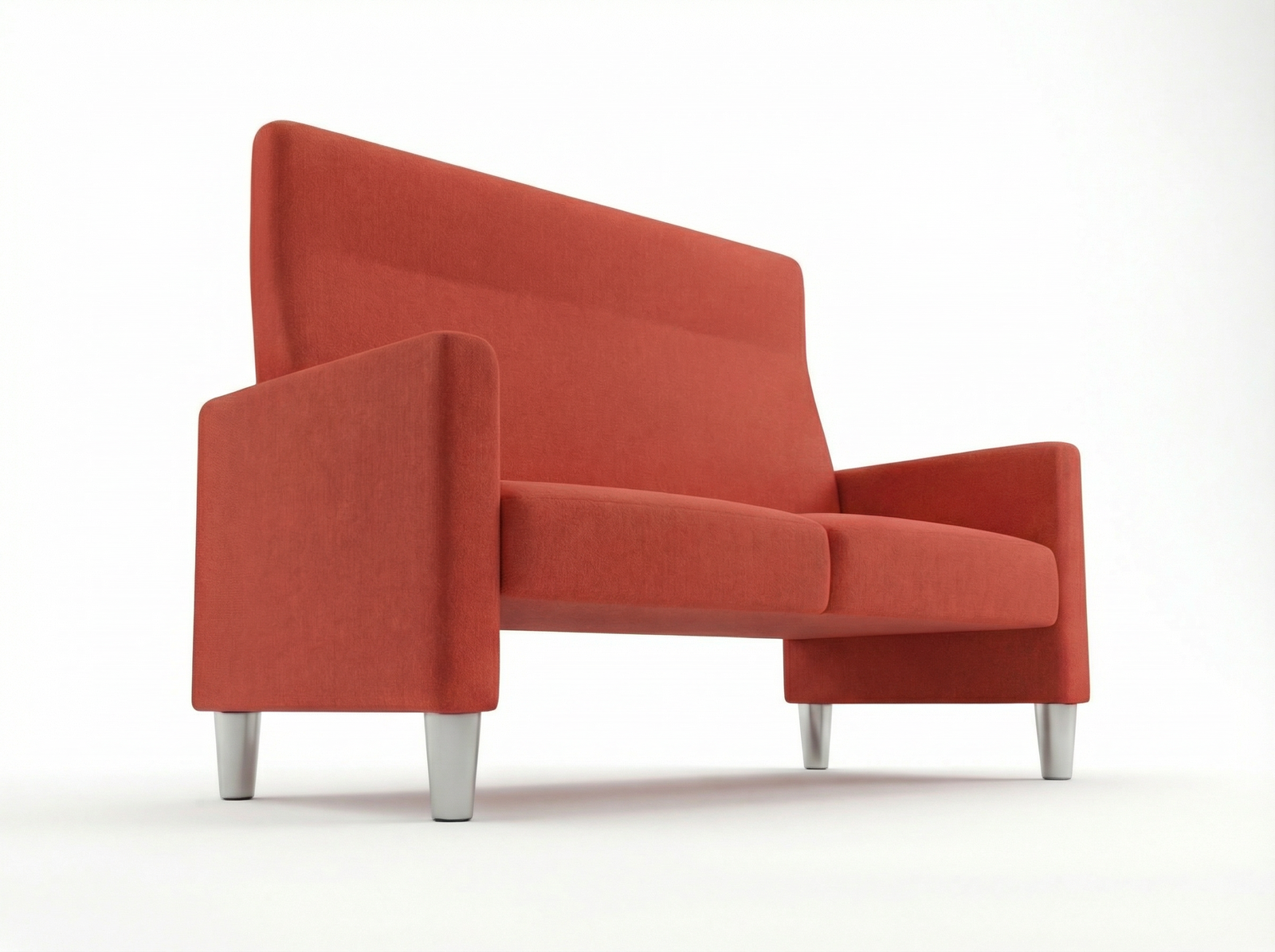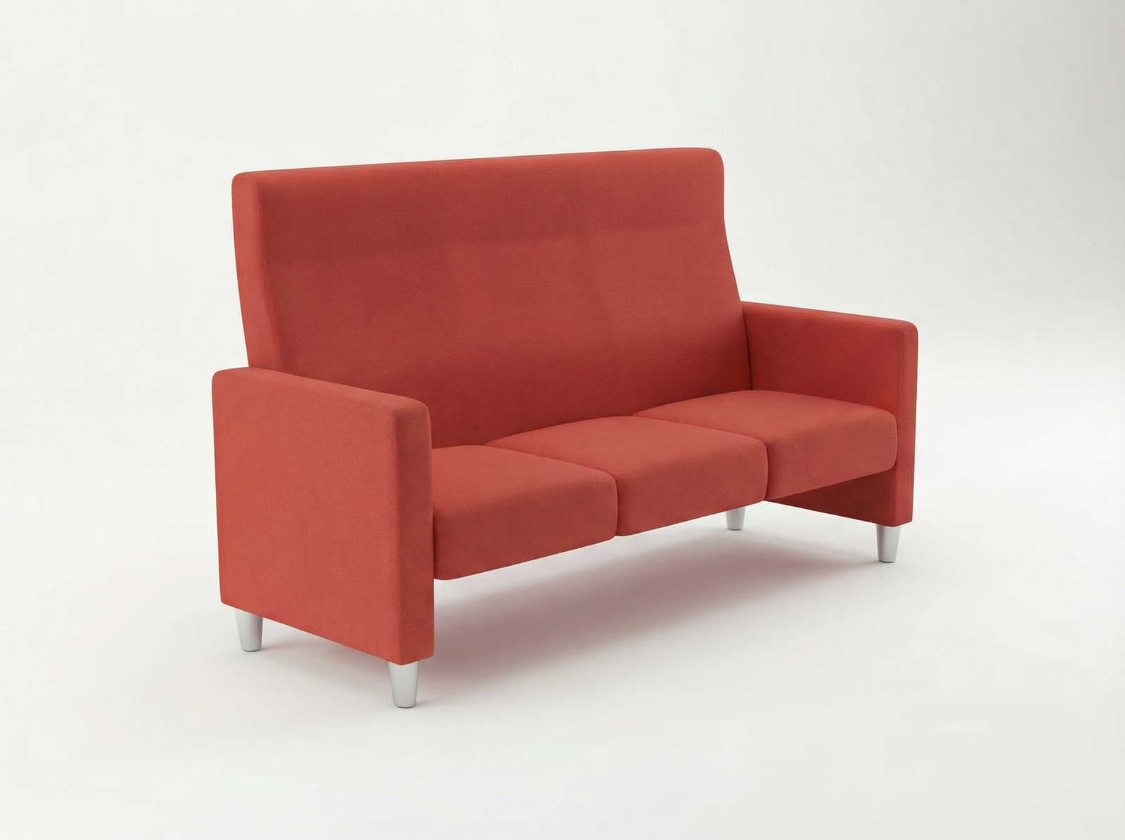 È una poltrona moderna con schienale alto e braccioli che si fondono armoniosamente con le gambe.