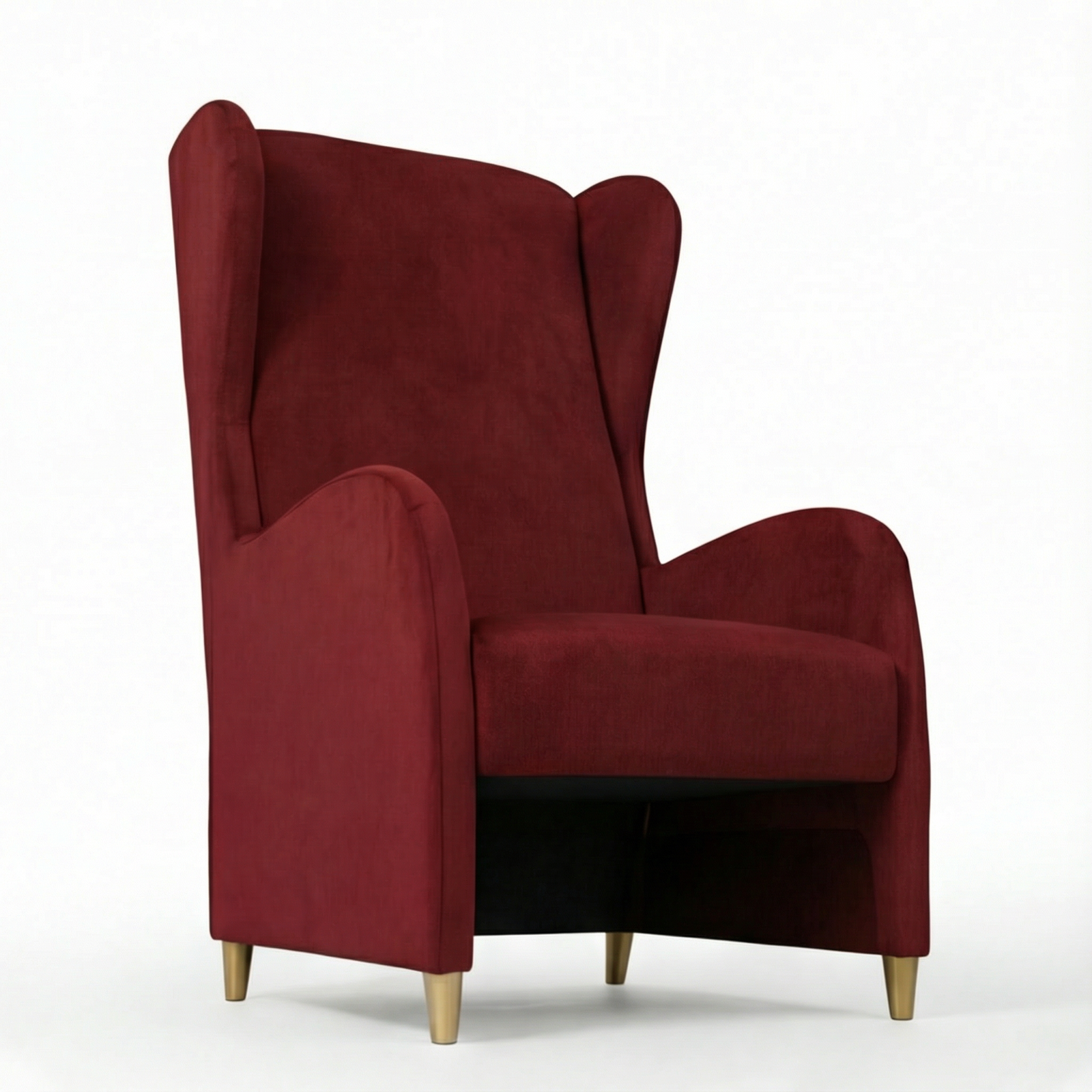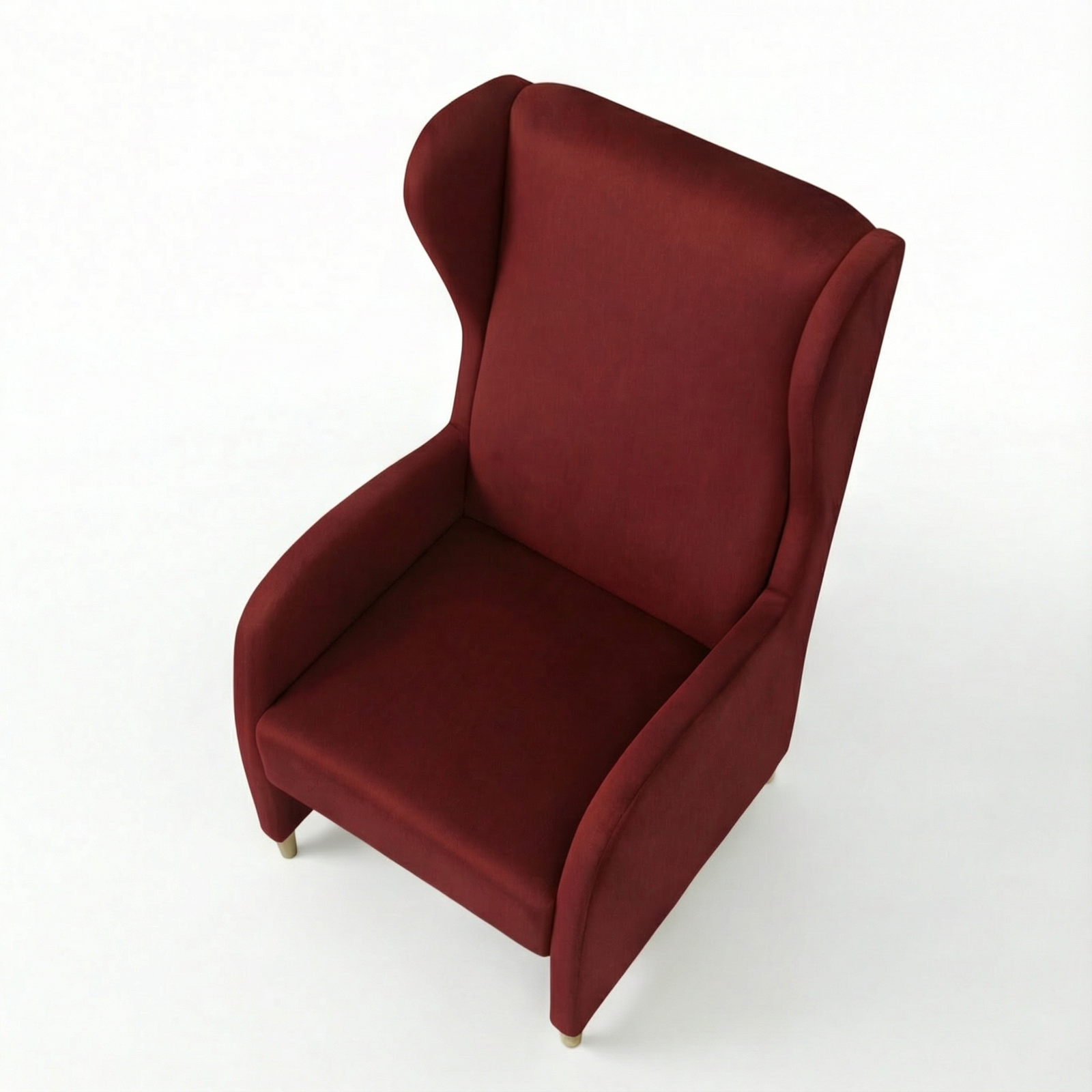 Lo schienale, alto e sagomato nella parte superiore, crea due ali che avvolgono le spalle, offrendo una sensazione di comfort totale.